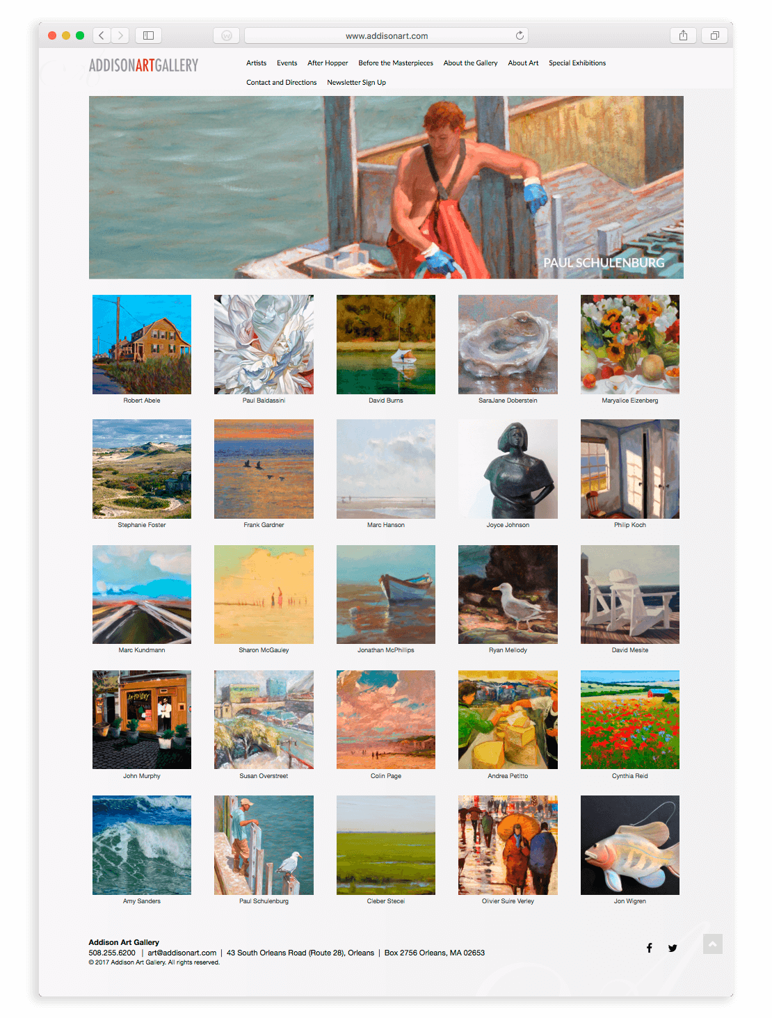 The Addison Agency   |  508.237.4661   |  marketing@addisonart.com  |  43 South Orleans Road (Route 28), Orleans  |  Box 2756 Orleans, MA 02653