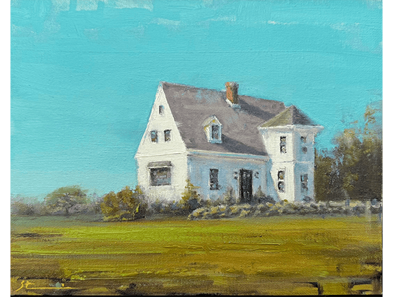 White Birdhouse | oil on canvas | 24 x 18, framed 26 x 20 | $3,100