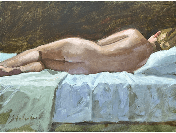 Recling Nude on White Sheet | oil | 12 x 16 | $900