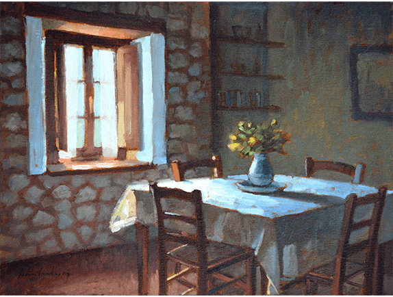 Flowers on a Table in Tuscany | oil | 16 x 12, framed 21 x 17 | $2,500