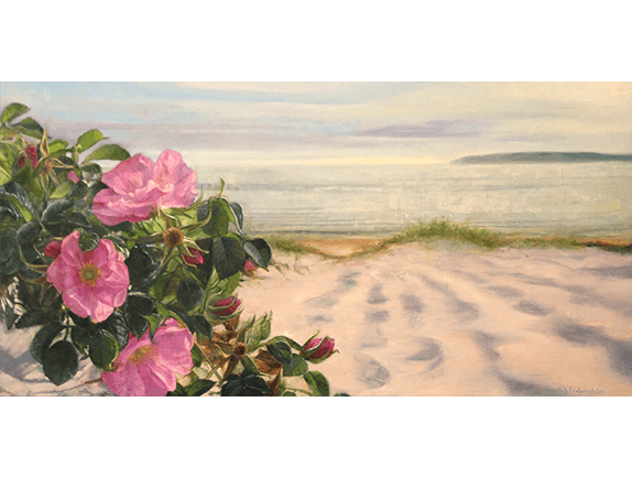 Salt Air and Wild Roses | oil | 12 x 24, framed 13.5 x 25.5 | $1,900
